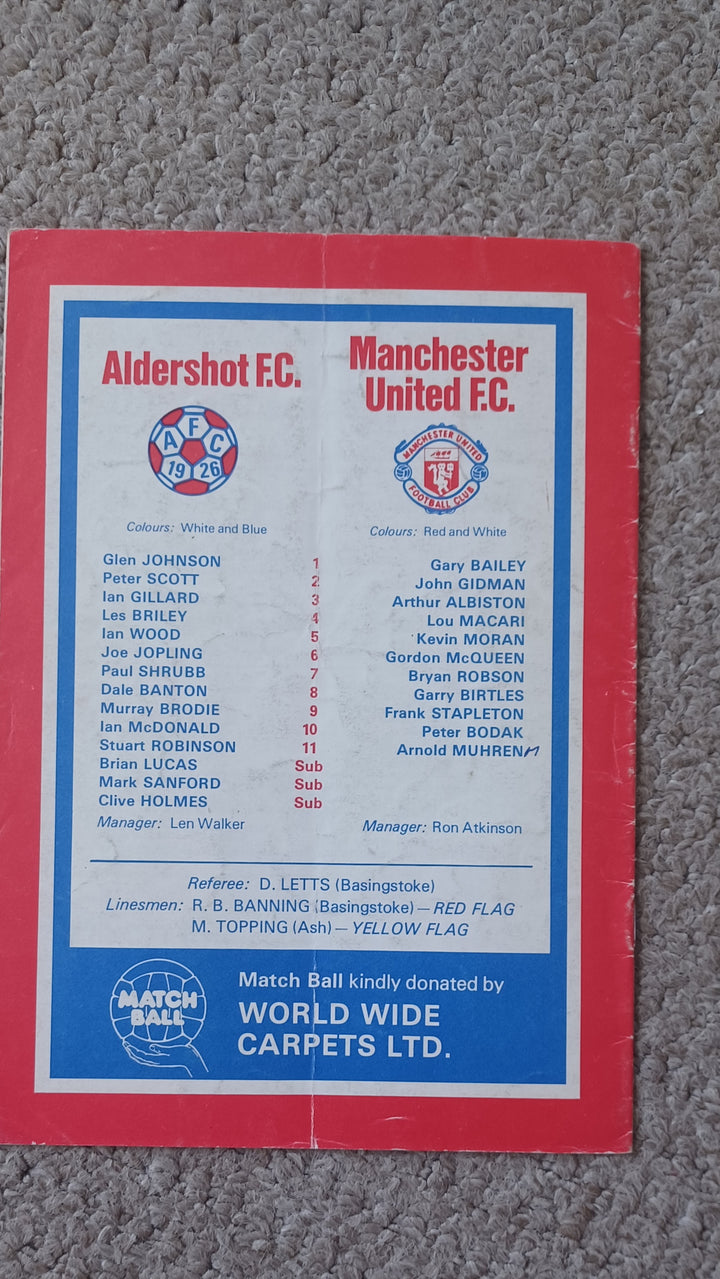 Aldershot v Manchester United 1982 South Atlantic Fund Match