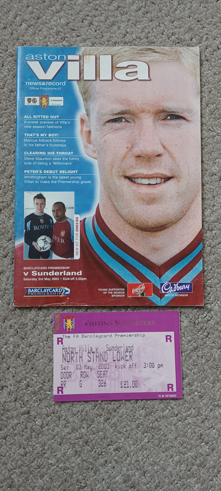Aston Villa v Sunderland 2002/3 includes match ticket