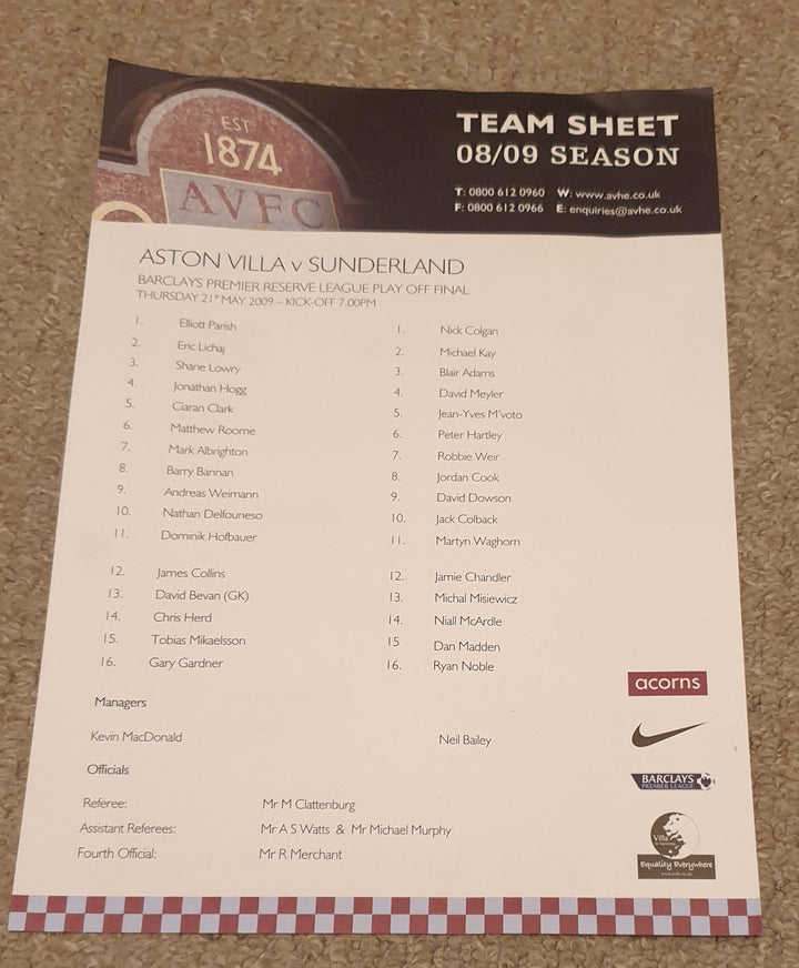 Aston Villa v Sunderland Premier Reserve League Cup Final 2009