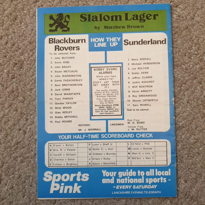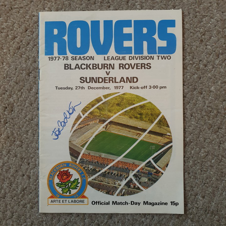 Blackburn Rovers v Sunderland 1977/78 Signed Joe Bolton