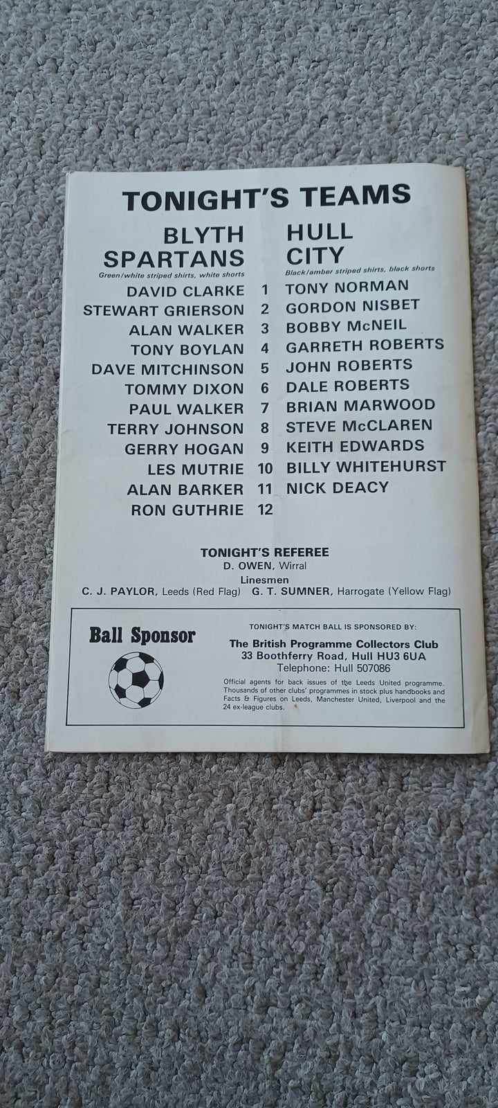 Blyth Spartans v Hull City FA cup 2nd rd 2nd replay @Leeds 1980/1