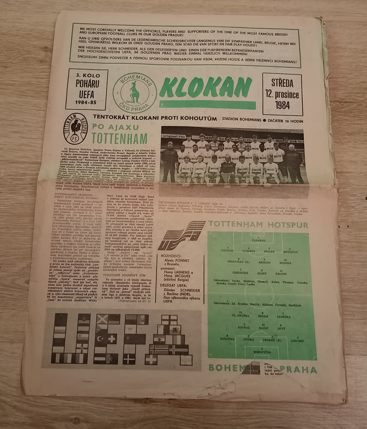 Bohemians Praha v Tottenham Hotspur 1984/5 UEFA Cup