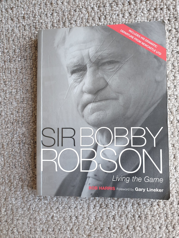 Living The Game written by Bob Harris. 230 page book on the detailing the story of Sir Bobbys footballing journey. Very good condition.