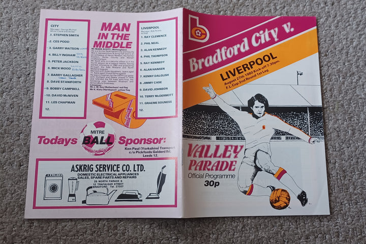 2nd round 1st leg. Bradford won 1-0. Excellent condition with a couple of neat team changes on back page.