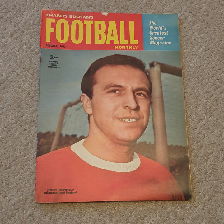 Charles Buchans Football Month. October 1963. Front cover Jimmy Armfield of Blackpool. Has a slight nick on top of the cover. Clean with slight staple rust. 64 page magazine with some great features from back in the day.