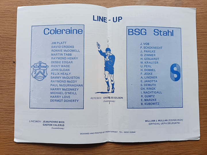 Coleraine v BSG Brandenburg UEFA Cup 1986/7