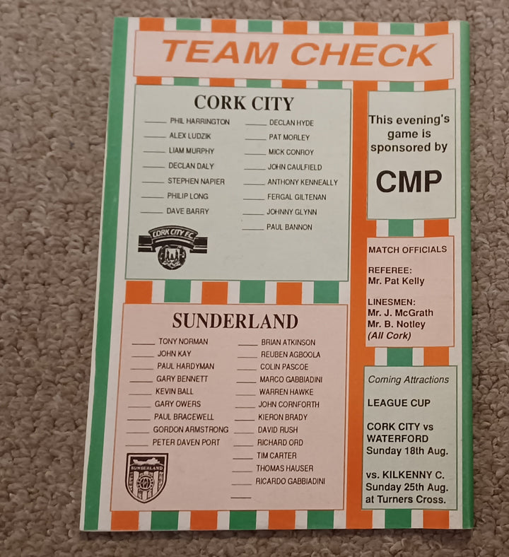 Cork City v Sunderland Pre Season 1991/2
