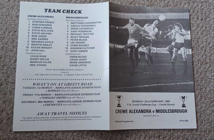 Crewe v Middlesbrough FA Youth Cup 4th Rd 1987/8