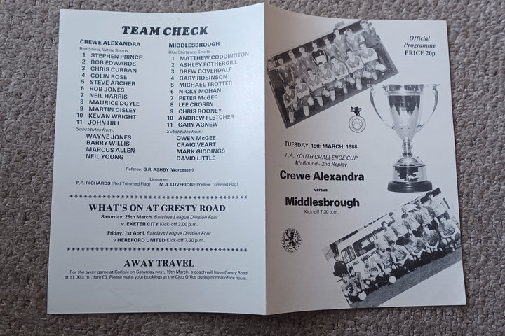 Crewe v Middlesbrough FA Youth Cup 4th rd 2nd replay 1987/8