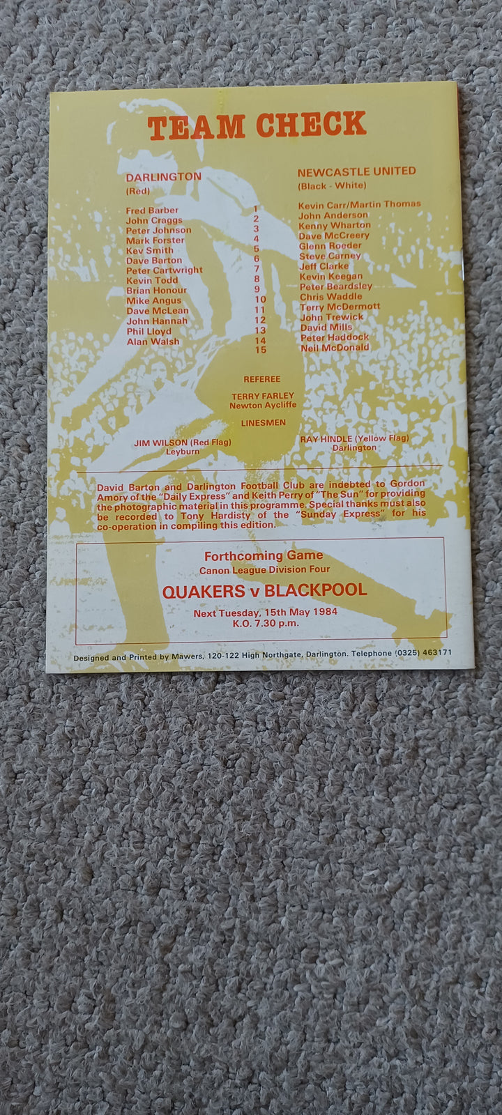 Darlington v Newcastle Utd D Barton Benefit Match 1984