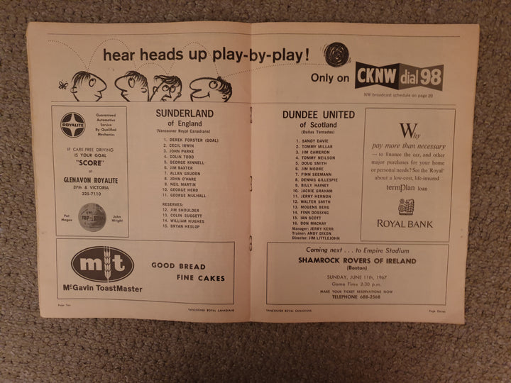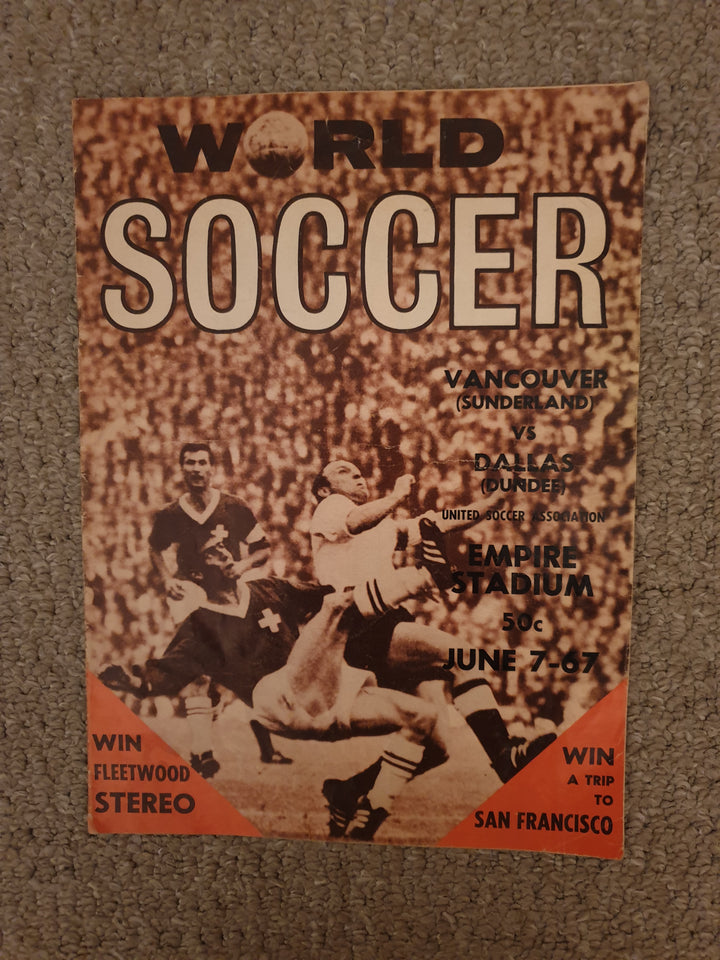 Extremely rare programme from Sunderland and Dundee Utd's tour of the USA back in June 1967. Dundee representing Dallas and Sunderland Vancouver. 24 page A4 issue. Excellent condition.