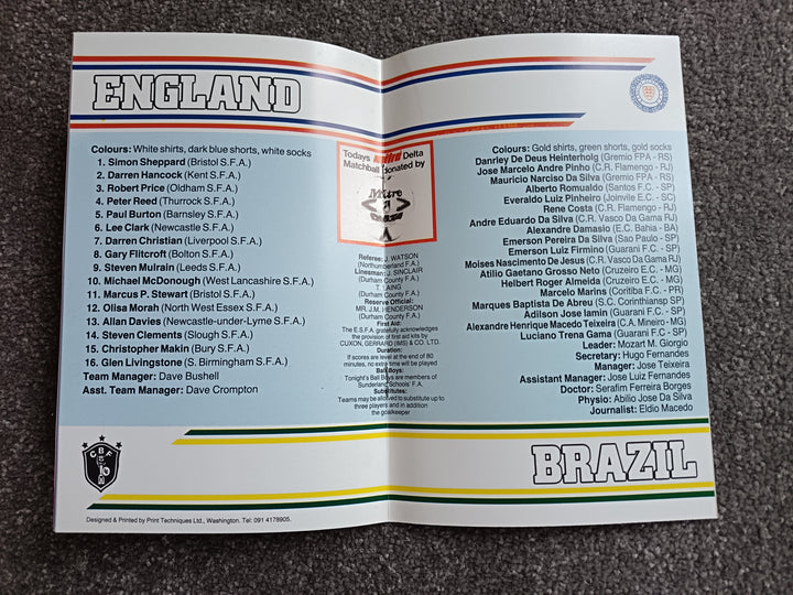 England v Brazil U15 International At Roker Park 1988