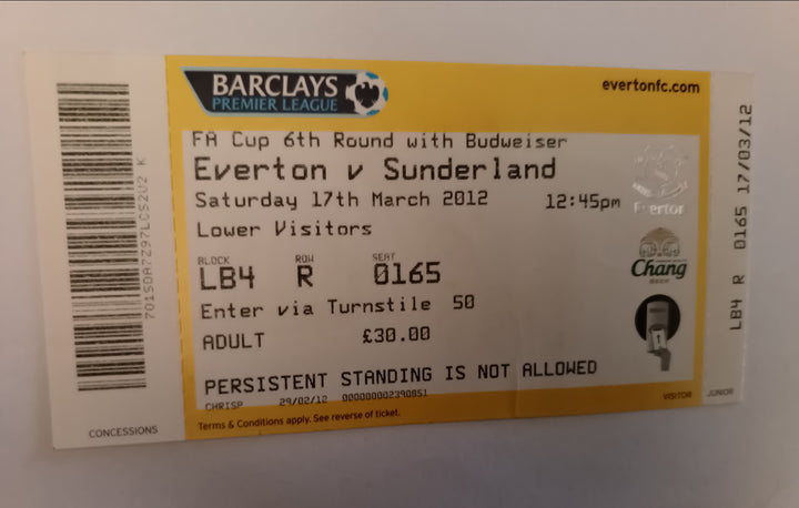 Everton v Sunderland Match Ticket 2011/12 FA Cup 6th Round