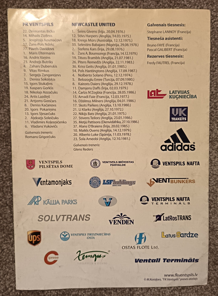 FK Ventspils v Newcastle Utd 2006/7 UEFA Cup Programme