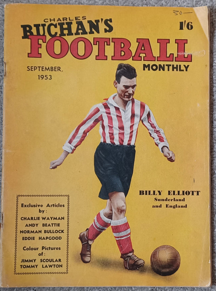 Charles Buchan football monthly from September 1953. Excellent condition apart the centre pages are loose with colour image of Sunderlands Billy Elliott on the cover.
