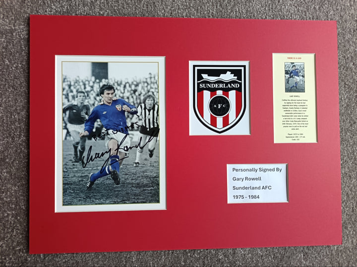Superb mounted display. Image is of Rowell completing his hatrick in the famous 4-1 over Newcastle back in February 1979. Signature obtained personally via private correspondence. Unframed.