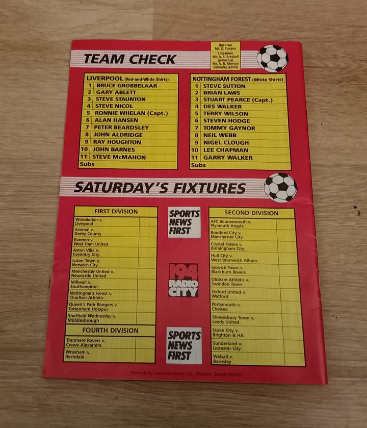 Liverpool v Nottingham Forest 1988/9 Hillsborough Tribute