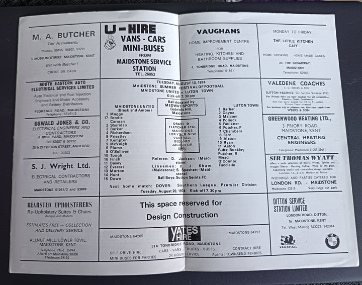 Maidstone United v Luton Town 1974/5 Pre Season Fr