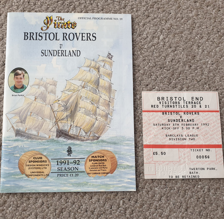 Bristol Rovers v Sunderland 1991/2 inc Match Ticket