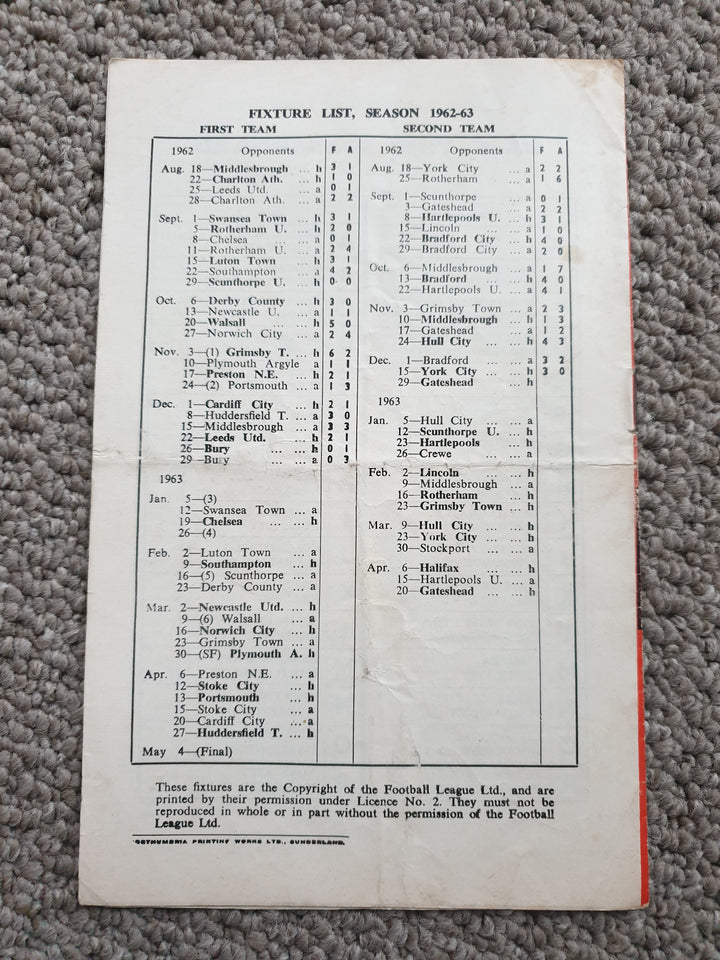 Rare programme from 1963. Dated 12th Jan 1963. Football League Cup semi final 1st leg. Clean, no writing but has a fold across the middle. Very rare programme.