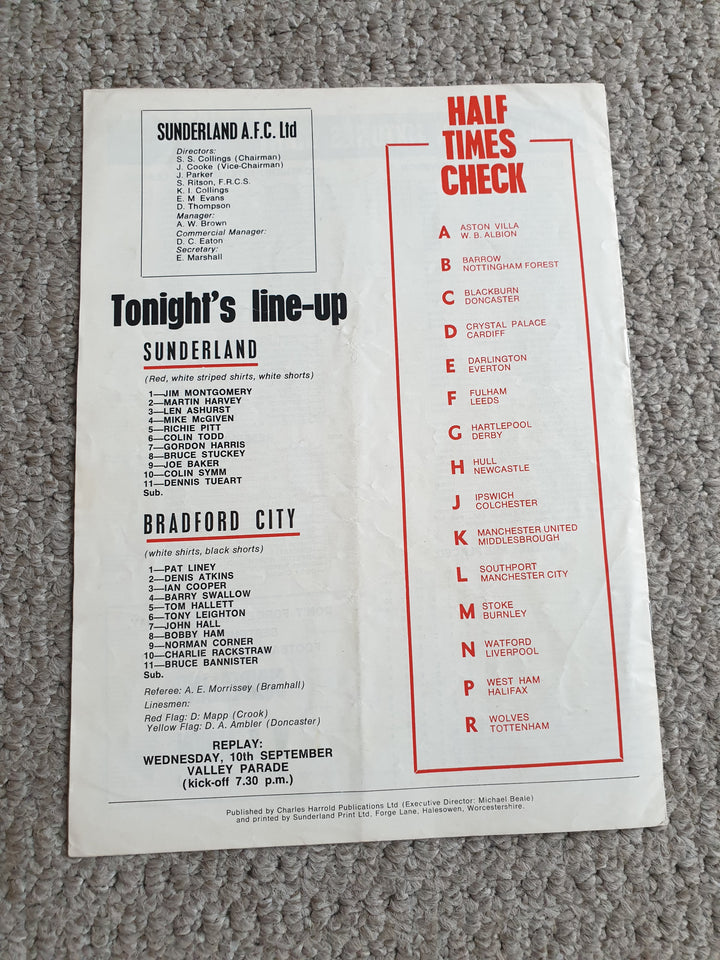 Sunderland v Bradford City 1969/70 League Cup Rare