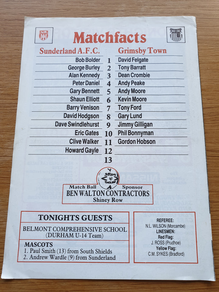 Sunderland v Grimsby Town 1985/86 FMC