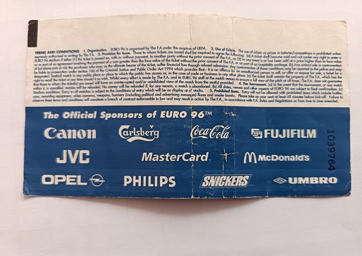 England won 2-0. Gazzas famous goal. Clean but has been folded.