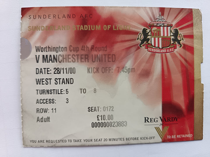 Match Ticket Sunderland v Manchester United Worthington Cup 2000/01