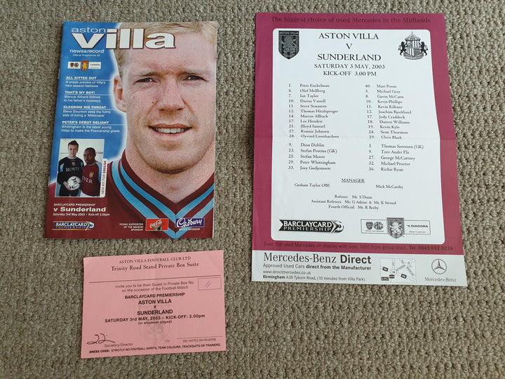 Aston Villa v Sunderland 2002/03 inc ticket and official teamsheet