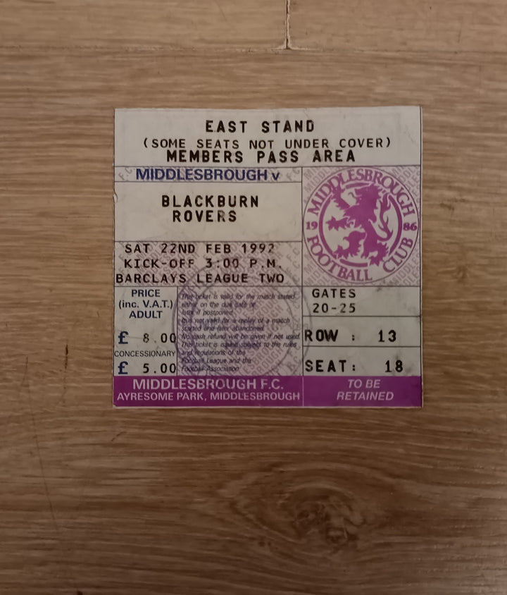 Middlesbrough v Blackburn 1991/2 Match Ticket.