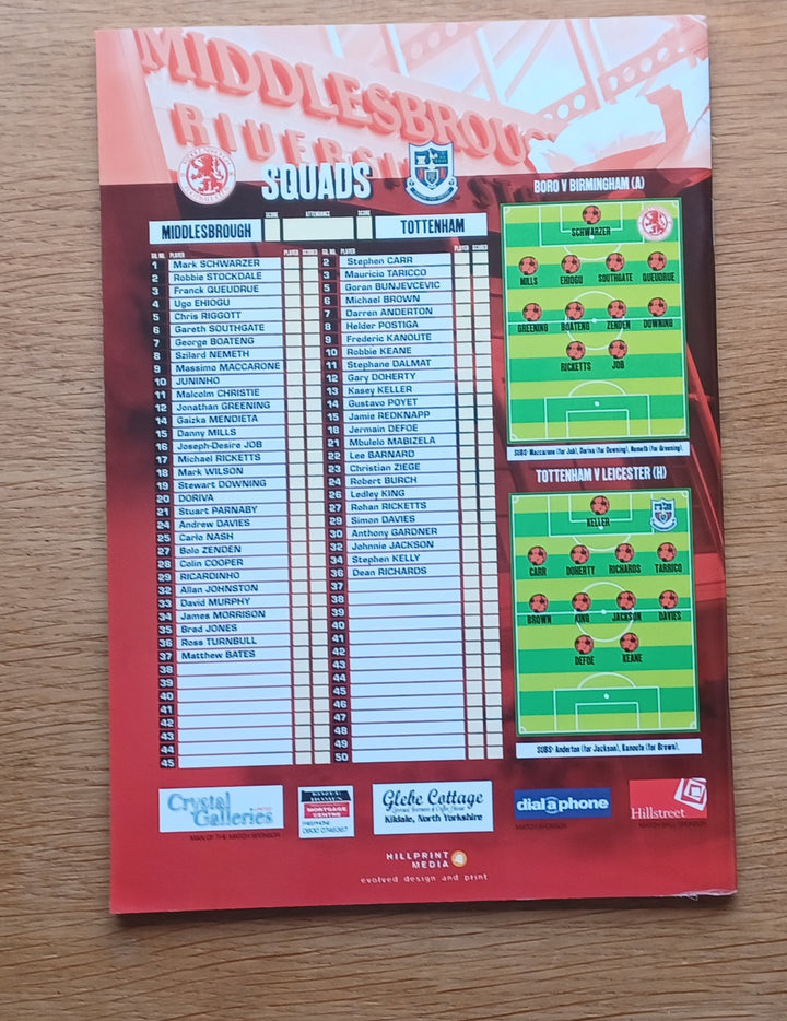 Middlesbrough v Tottenham 2003/4 Carling cup souvenir issue