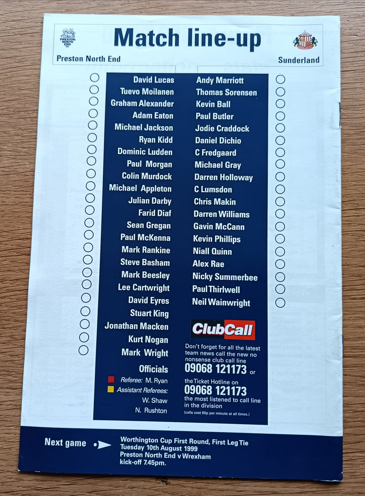 Preston North End v Sunderland 1999/00 Pre Season Friendly