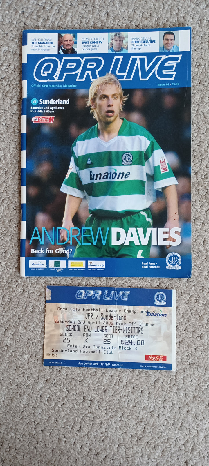 Queens Park Rangers v Sunderland 2004/5 inc Match ticket