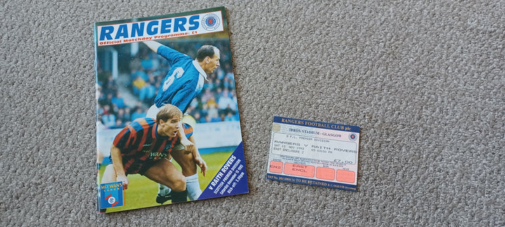 Rangers v Raith Rovers 1993/4 Nov inc match ticket