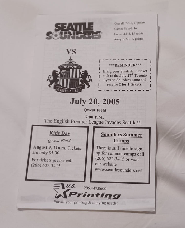 Seattle Sounders v Sunderland Pre Season 2005/6