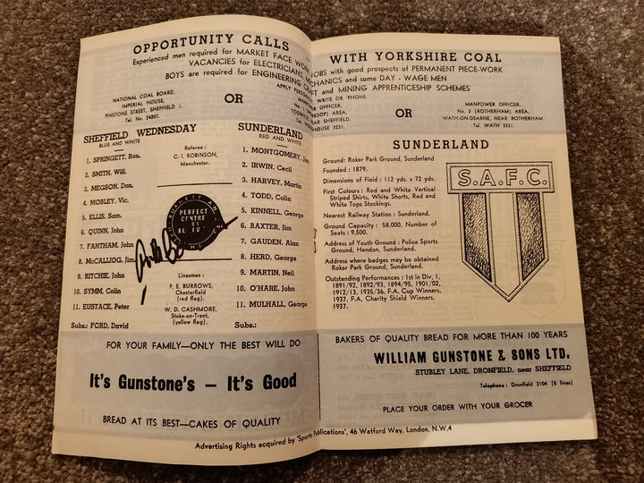 Sheffield Wednesday v Sunderland 1966/7 SIGNED Jim McCalliog