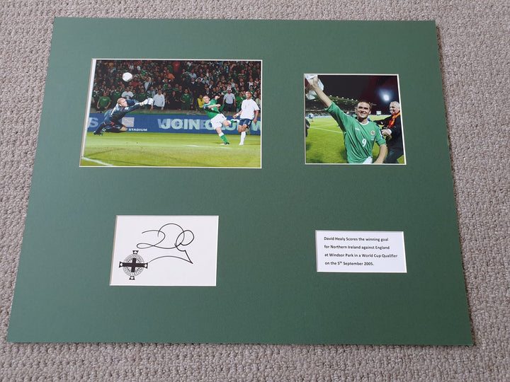 Signed Mounted Display 20x16 inch. World Cup qualifier Northern Ireland v England September 2006. Healy scores the winner in a 1-0 win at Windsor Park.