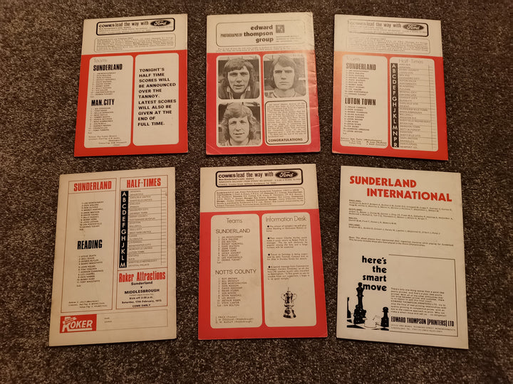 Sunderland Home Programmes 1972/3 Complete Cup Winning Season
