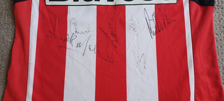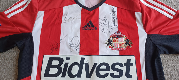 Signatures include. Jimmy Montgomery, Dick Malone, Bobby Kerr, Ritchie Pitt, Vic Halom from the 73 cup win and Jermain Defoe, Patrick Van Aanholt, plus 3 others.