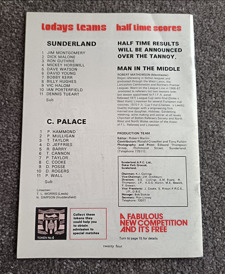 Sunderland Signed 1973/4 Programme Micky Horswill & Bobby Kerr