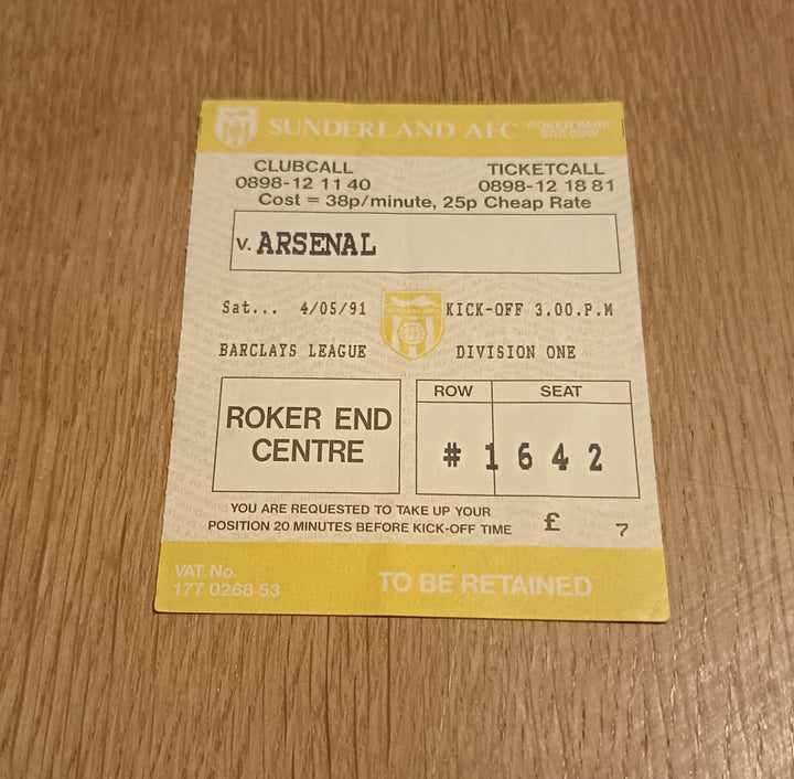 4th May 1991. Excellent condition. Arsenal won the title on the same day. Game ended 0-0.