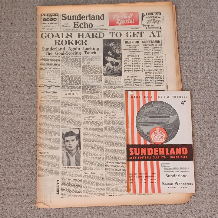 Sunderland v Bolton Wanderers Football Echo & Match Programme 1957/8