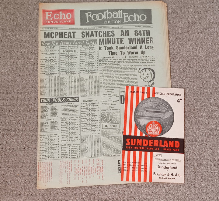 Sunderland v Brighton & HA Football Echo & Match Programme 1960/1