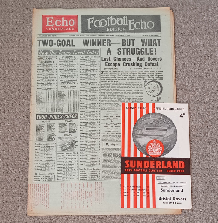 Sunderland v Bristol Rovers Football Echo & Match Programme 1960/1