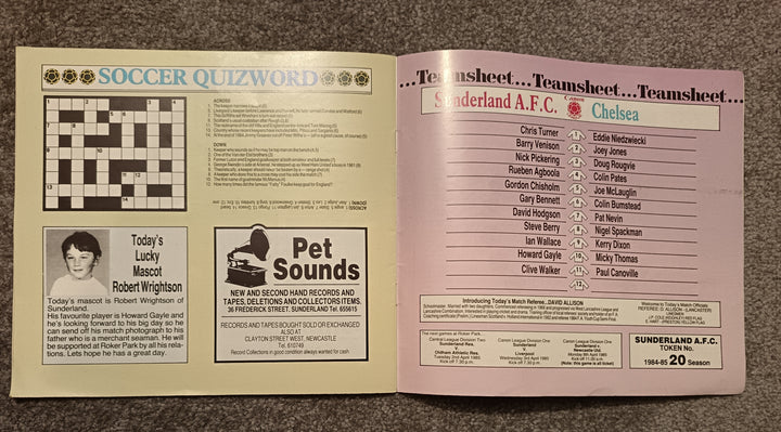 Sunderland v Chelsea 1984/5 Signed Gary Bennett