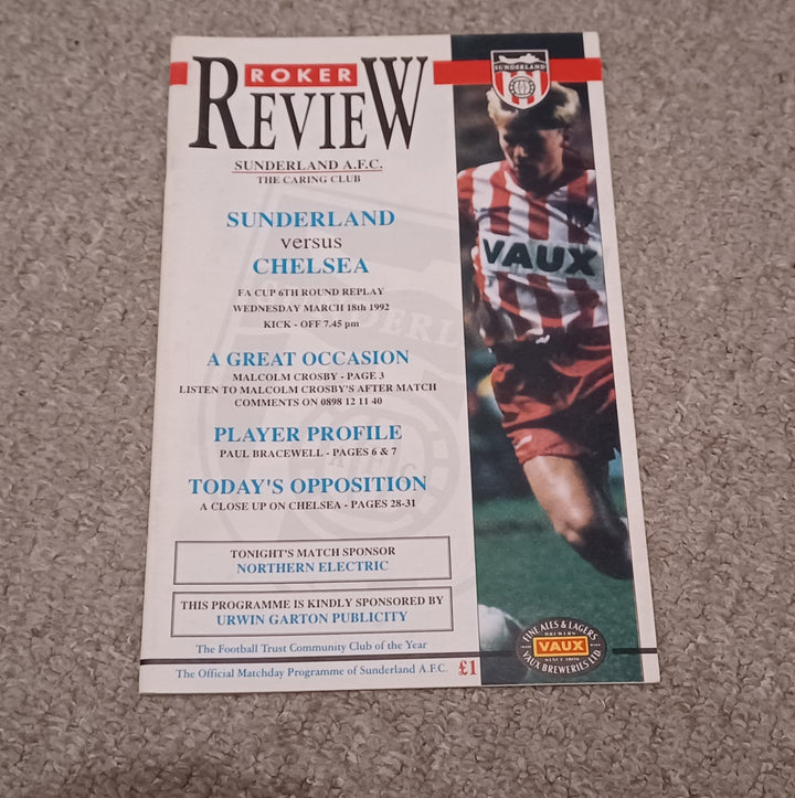 Sunderland v Chelsea FA CUP 6th Round Replay 1991/92