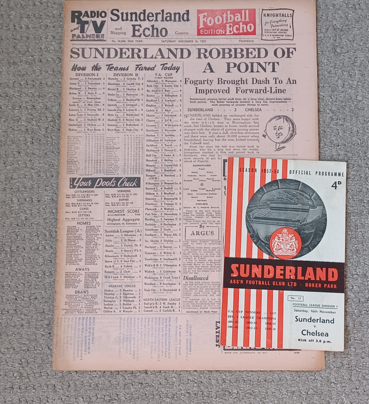Sunderland v Chelsea Football Echo & Match Programme 1957/8