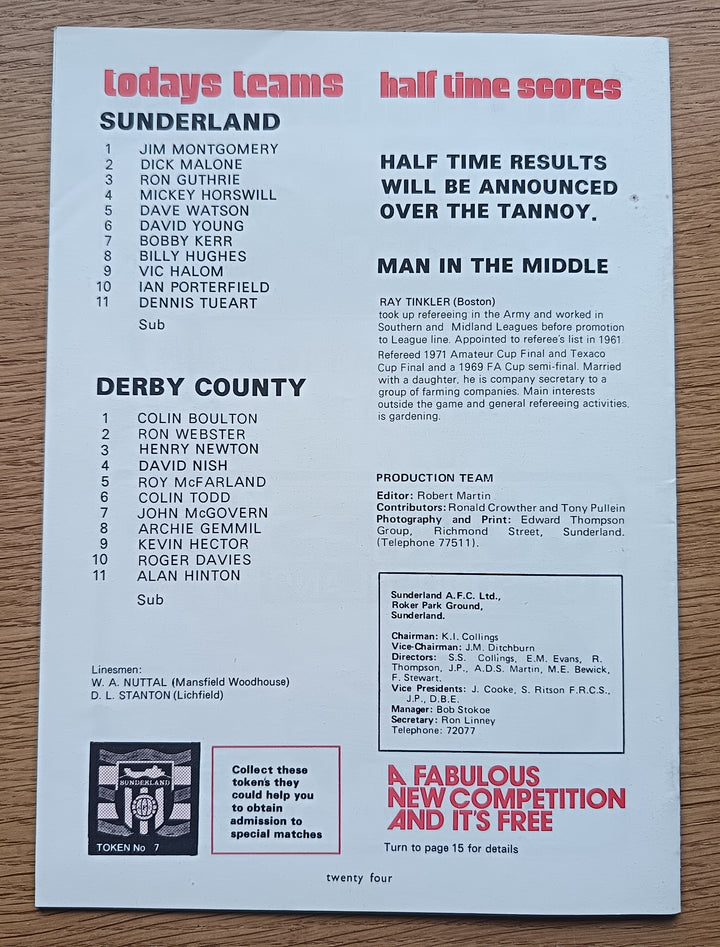Sunderland v Derby County 1973/4 FLC