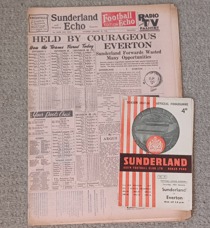 Sunderland v Everton Football Echo & Match Programme 1957/8