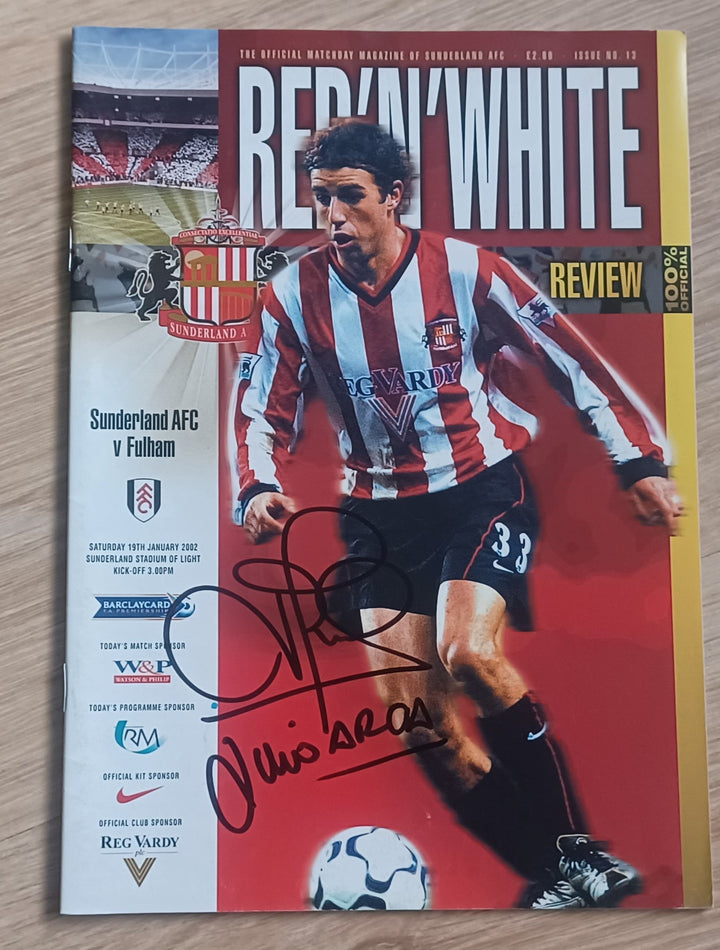 Signed over his front cover image by Julio Arca. Signature obtained personally at a charity event in Sunderland. Programme in mint condition.